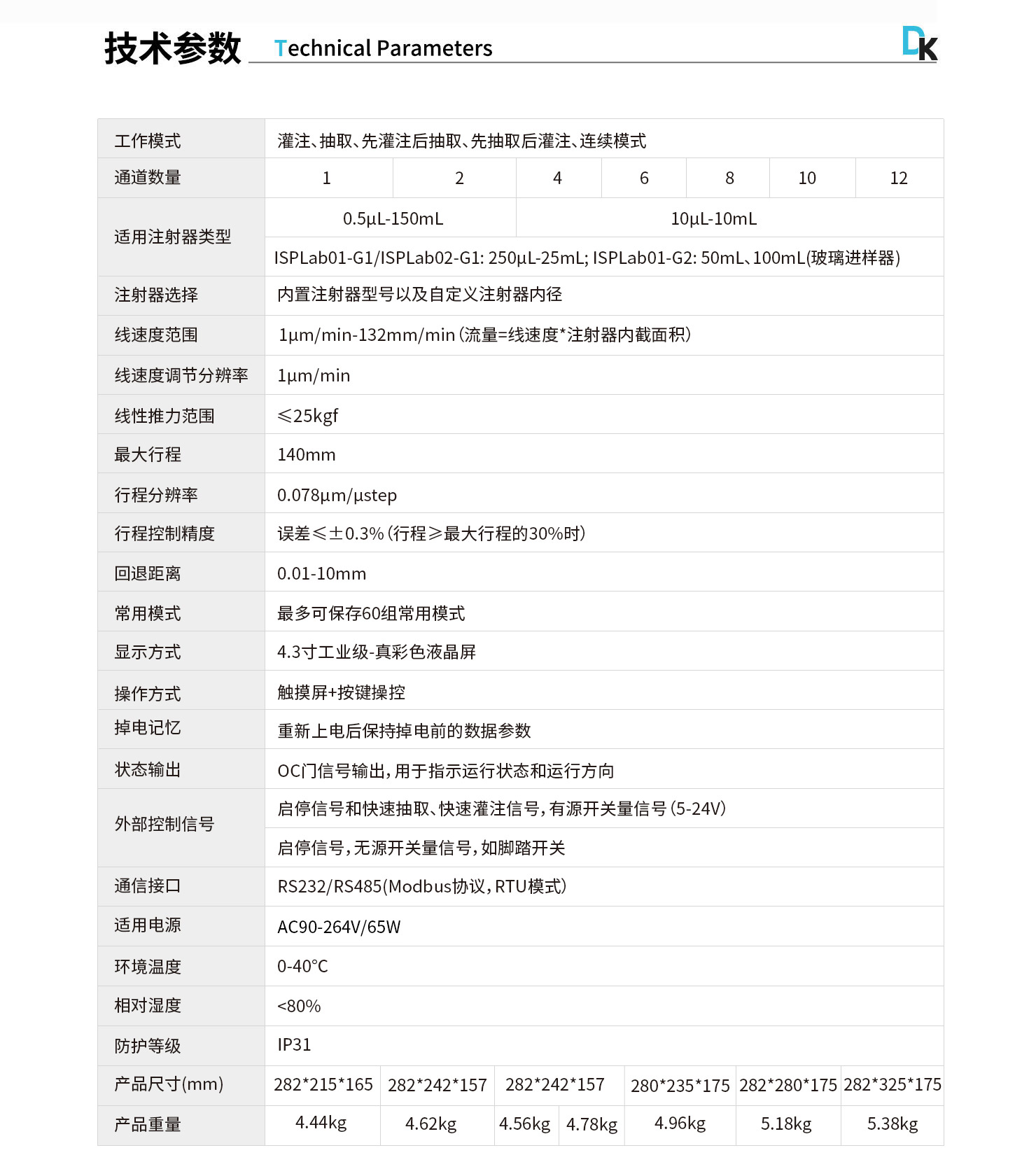 線速度范圍:1μm/min-132mm/min(流量=線速度*注射器內(nèi)截面積)