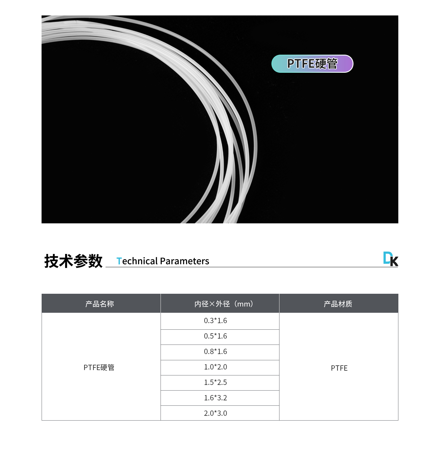 型號:PTFE硬管