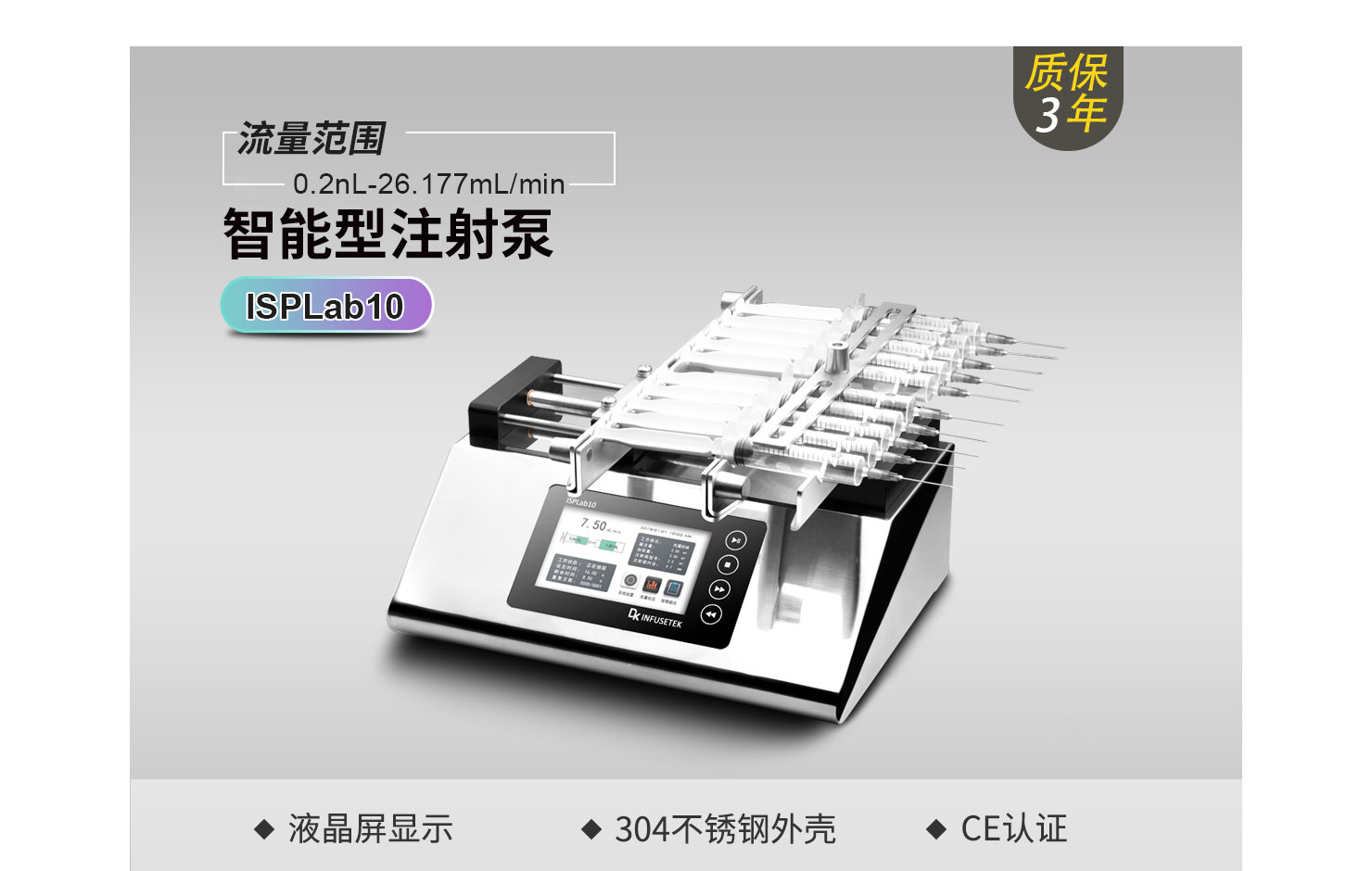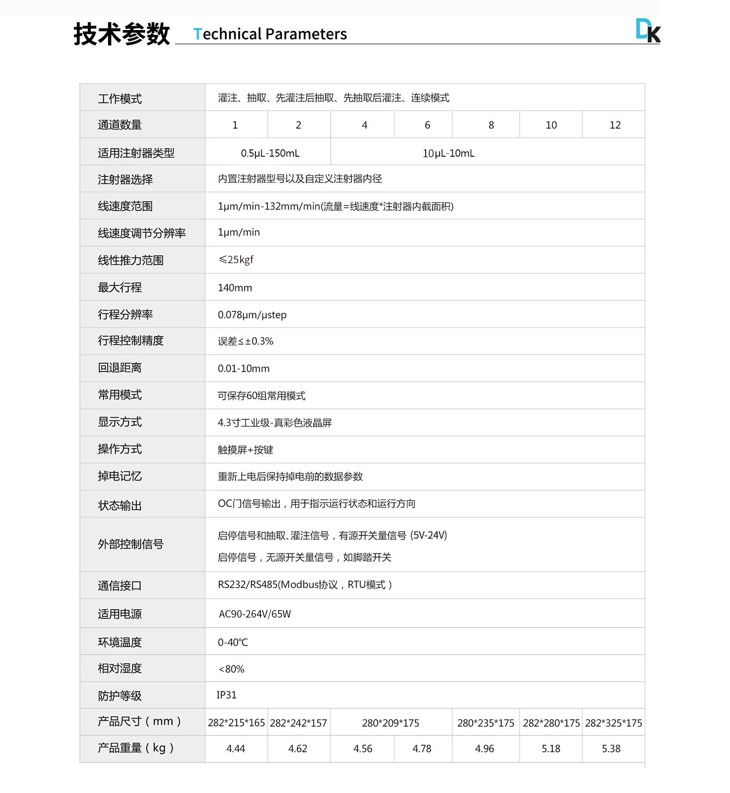 線速度范圍:1μm/min-132mm/min(流量=線速度*注射器內(nèi)截面積)